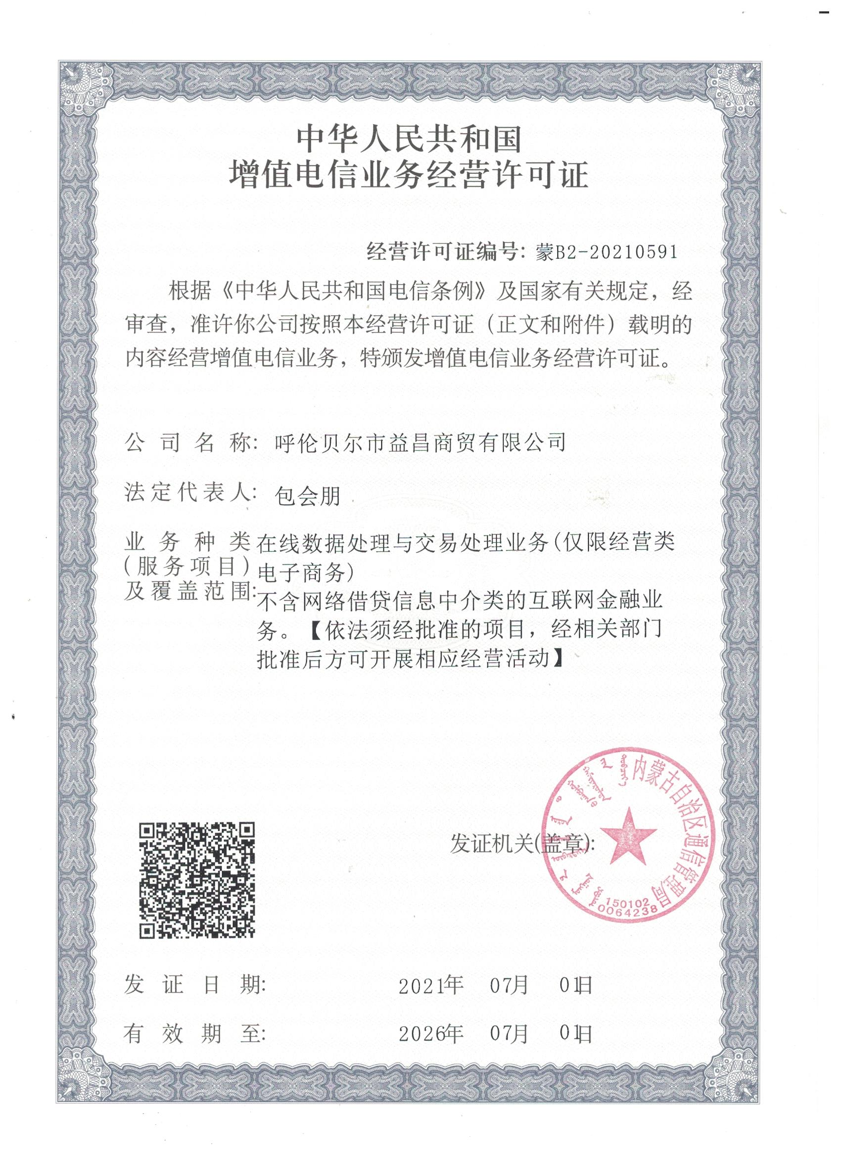 电信增值业务许可证
