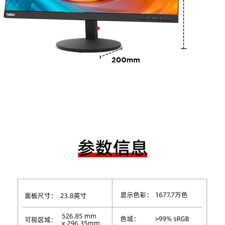 联想(ThinkVision)23.8英寸 2K QHD IPS屏 广色域 窄边框支持壁挂 电脑办公显示器S24q