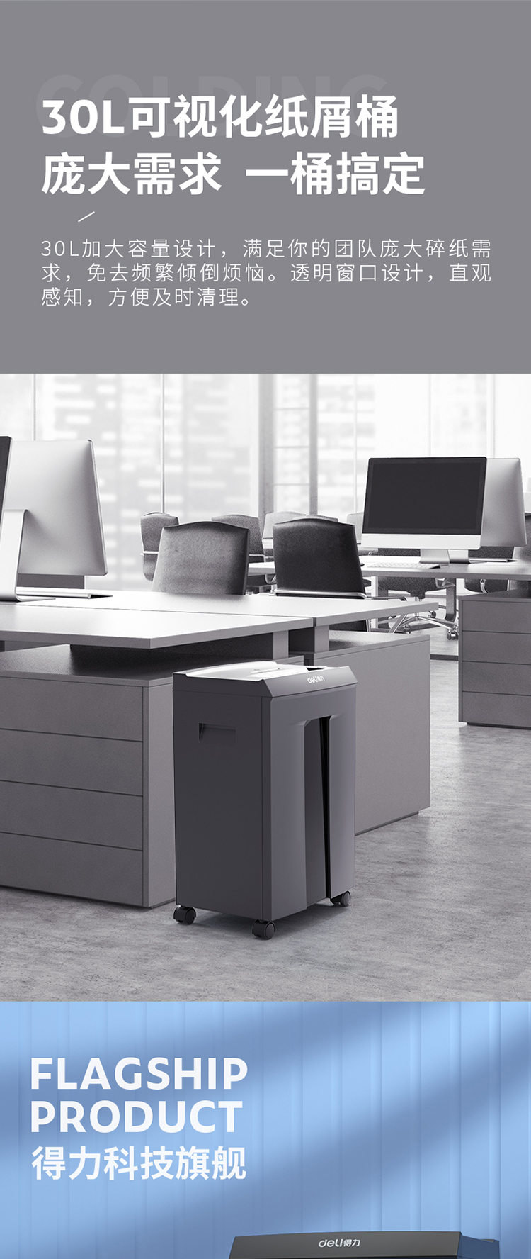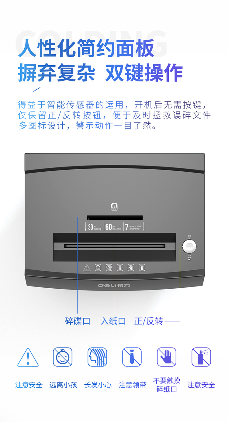 得力 deli 德国6级高保密大型高速办公60分钟长时间碎纸机 30L大容量文件颗粒粉碎机 碎卡碎光盘9959