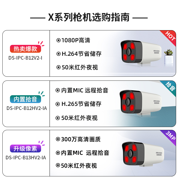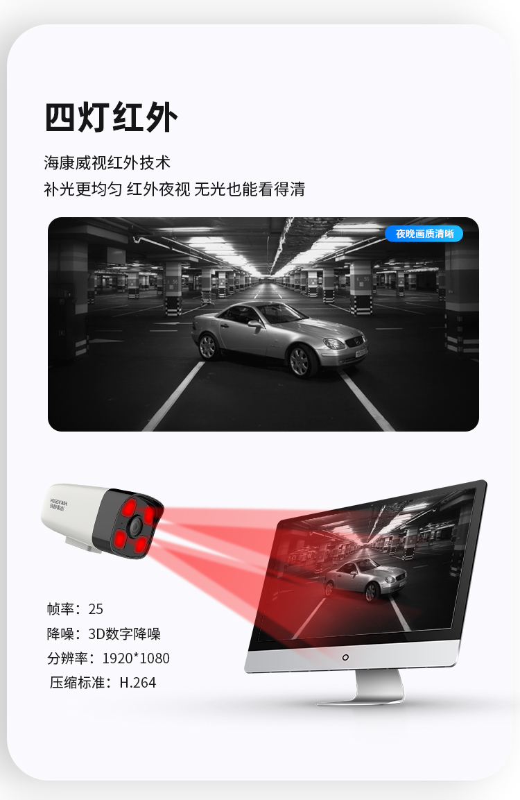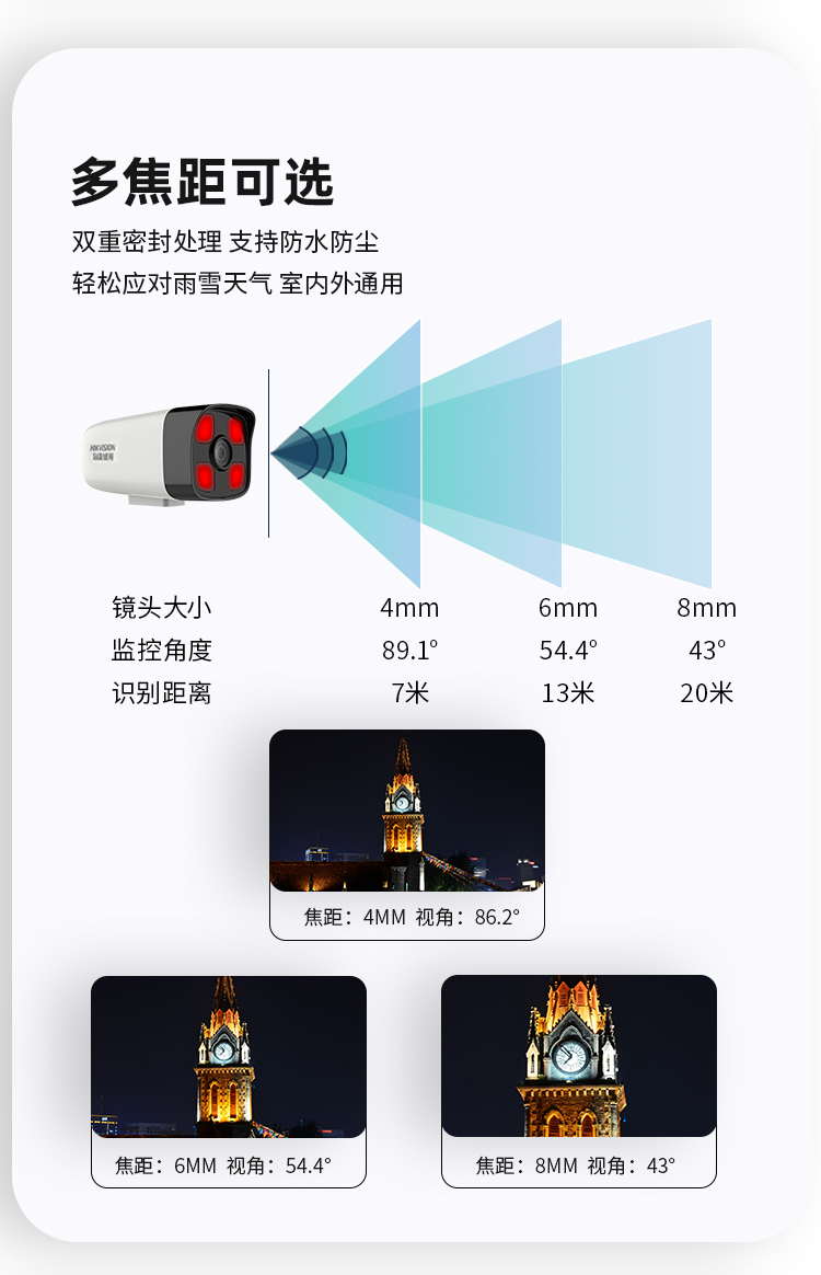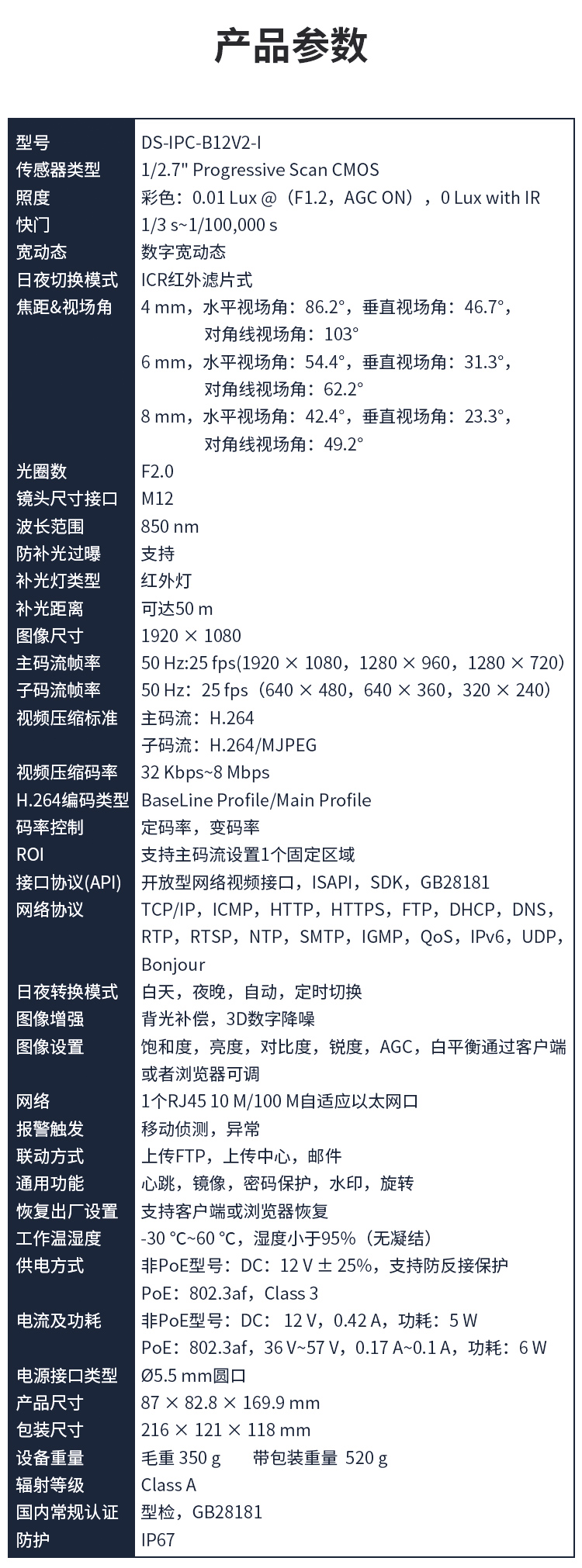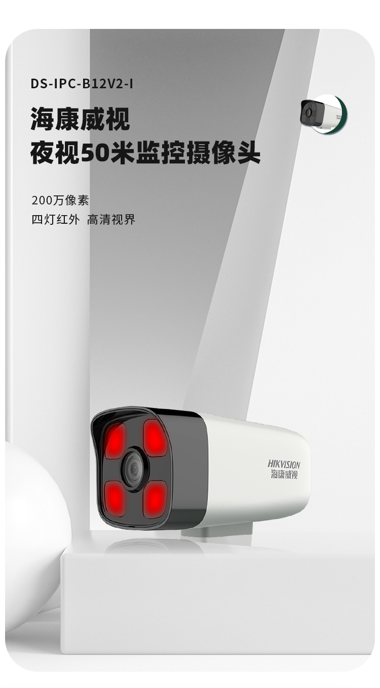 海康威视监控摄像头200万高清POE网线供电红外夜视商超学校室外防水移动侦测手机远程安装便捷B12V2-I 4MM