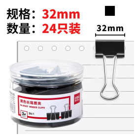 得力/deli 8563 长尾夹 黑色32mm票夹金属燕尾夹票据夹子办公用品24只/盒