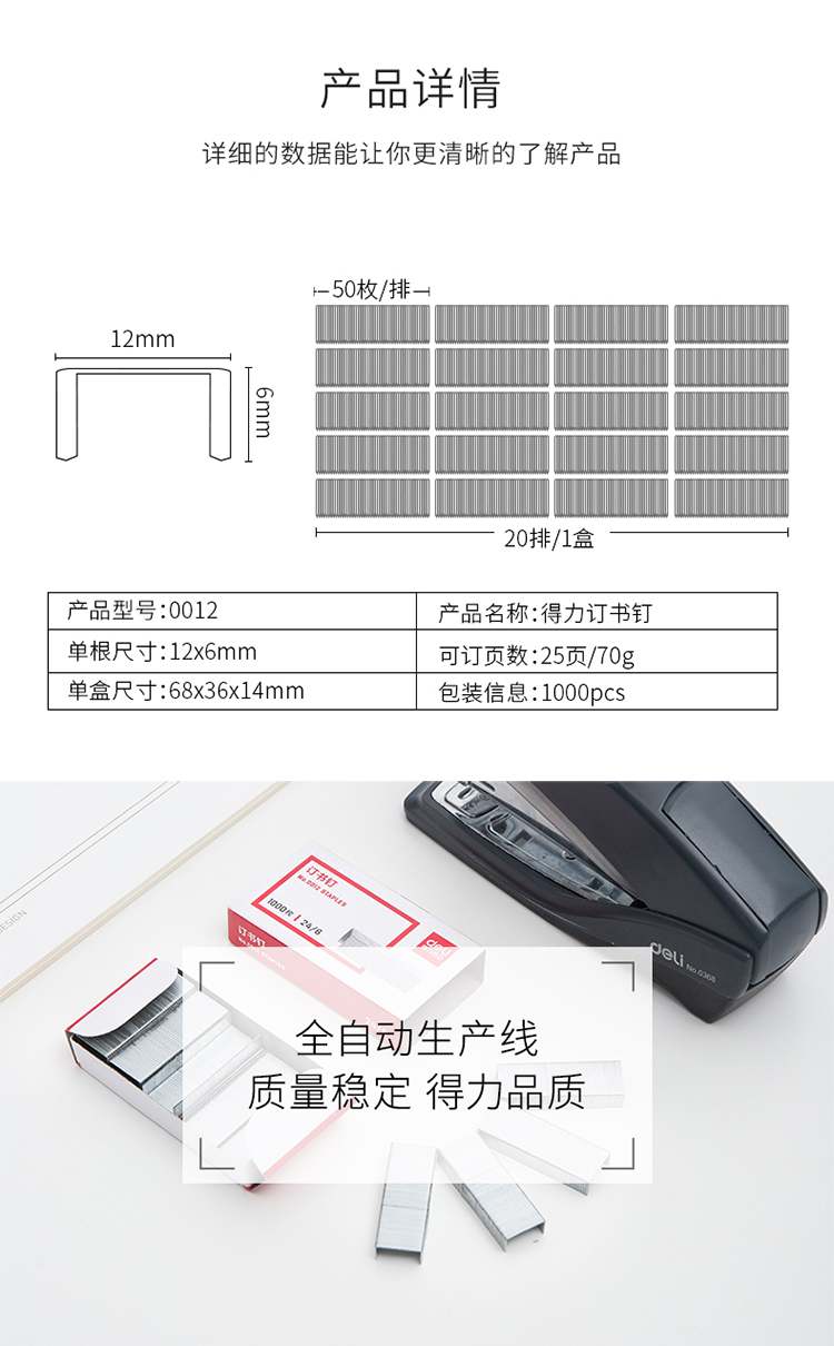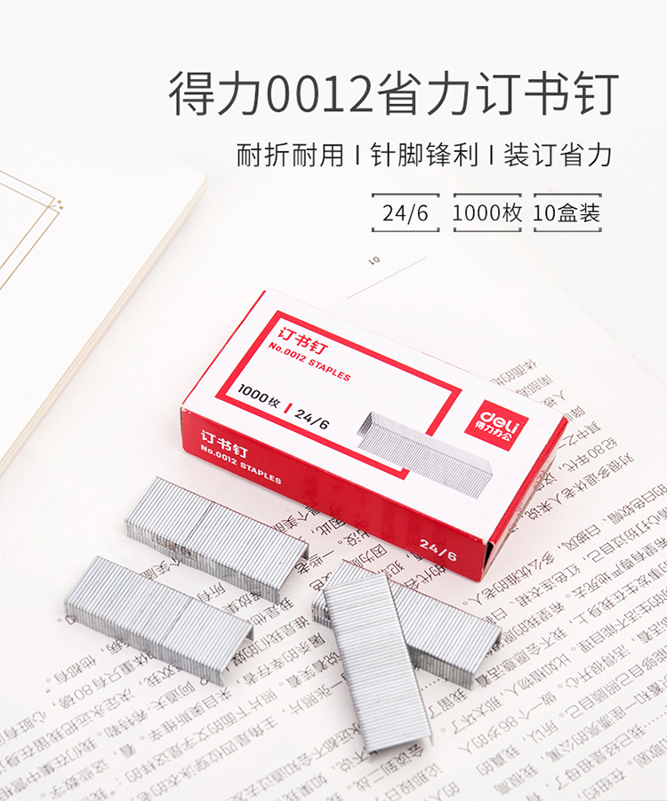 得力 deli 高强度订书钉 12#订书针 1000枚/盒 10盒装 办公用品 0012