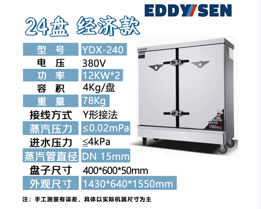 伊德欣蒸饭柜商用多规格电热蒸箱蒸包炉燃气蒸柜食堂蒸饭车工程款4-24盘 电热款【24盘】YDX-240